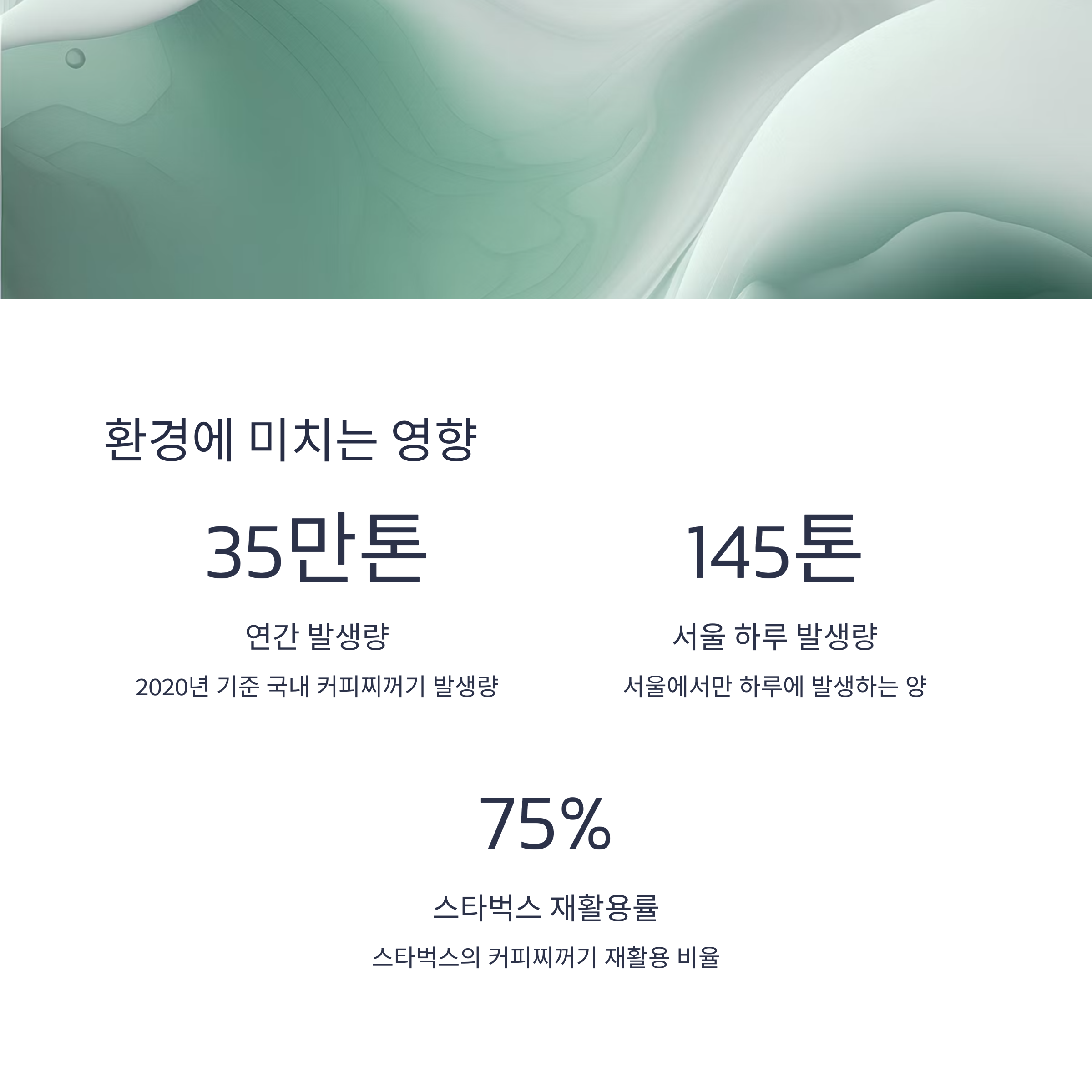 유발합니다. 스타벅스는 연간 7,000~8,000톤의 커피찌꺼기 중