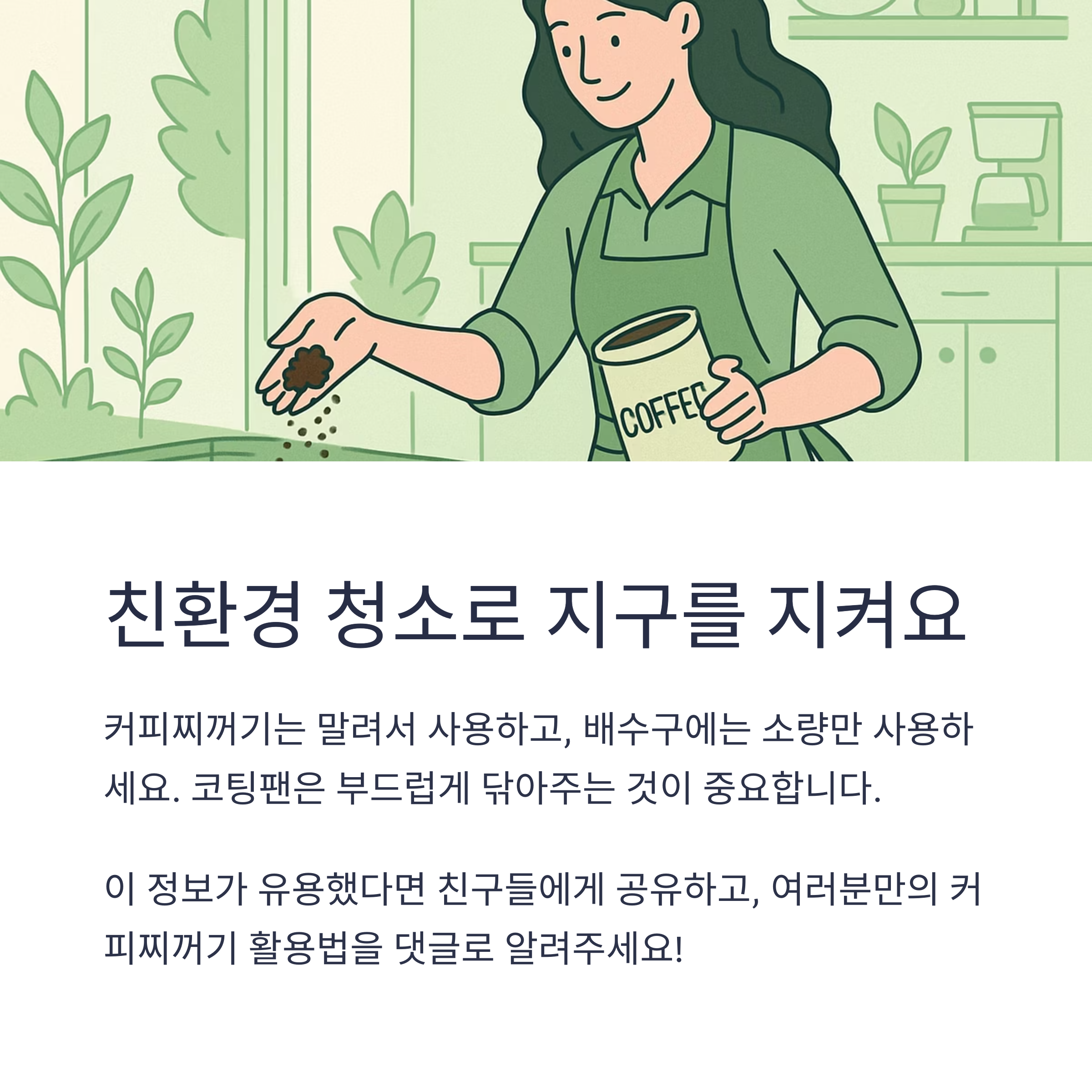 | 싱크대·배수구 | 커피찌꺼기 + 뜨거운 물 | 소량씩 사용, 막힘 주의 |